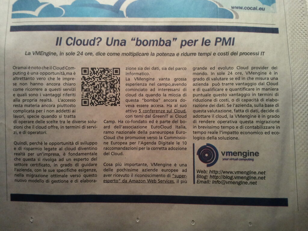 VMengine on the Sole24Ore insert fabio.cecaro 14 years ago VMengine is published in the “Digital Business” insert Editorial Report 24 / Company of the day 28 Feb.